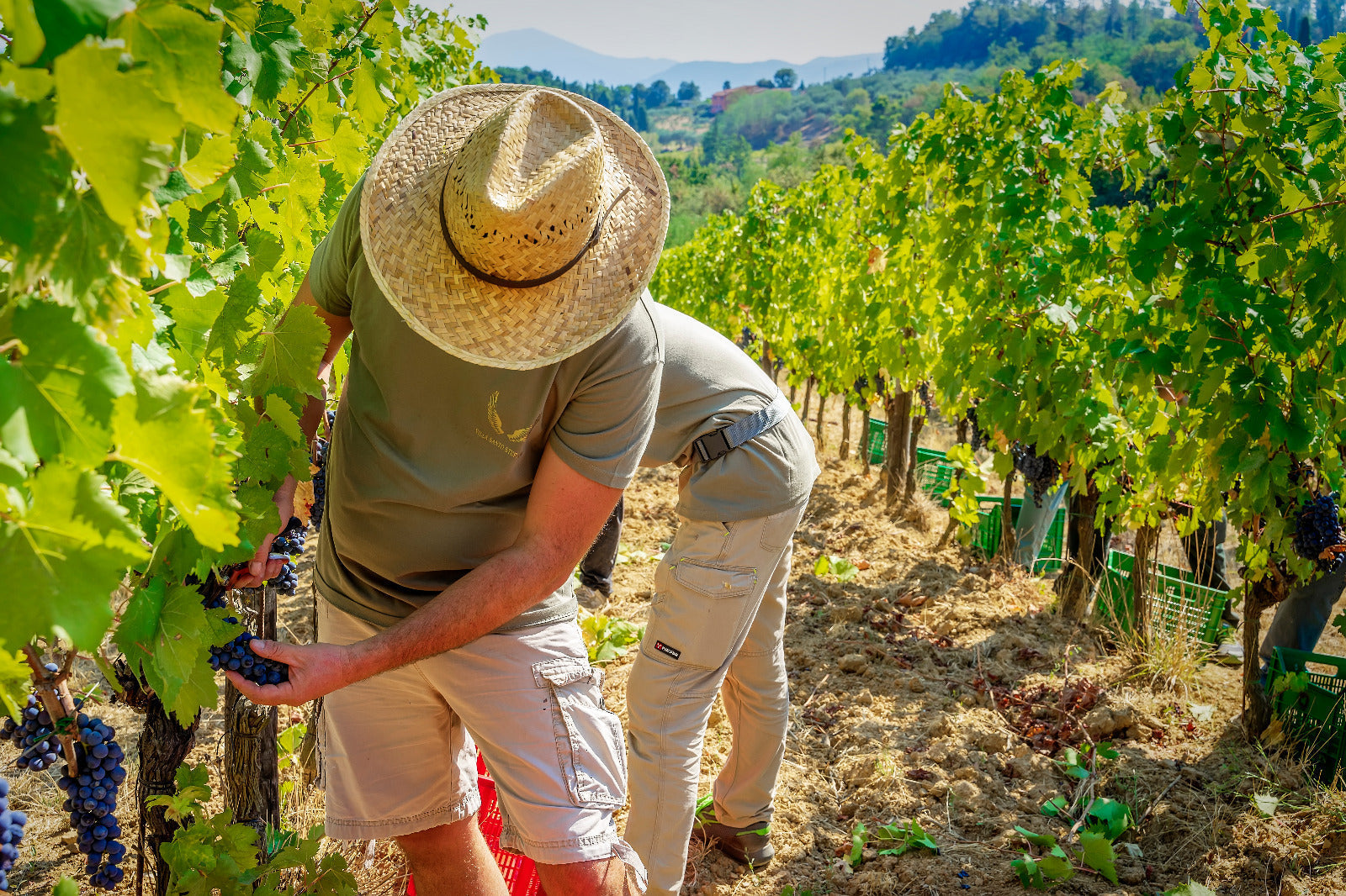 Aufgrund der großen Hitze haben wir bereits Ende August mit der Weinlese begonnen, zunächst in der Maremma. Wie immer war der Merlot als erster dran, fantastische Trauben! Da wir die Felder dort unten dank einer Quelle bewässern können, konnten sich die Reben ideal entwickeln. Auch der Alkoholgehalt stimmt.